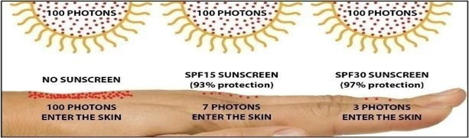 Sunscreens are called sunburn or sun blocker creams. It is a topically used product. Its usage became popular day to day against UV radiation. Since, the purpose of sunscreen is to shield the skin from UV rays from the sun. They assist the body's built-in defenses against UV rays from the sun. Considering its mode of operation, sunscreens are divided into 2 types; they are Physical & Chemical sunscreen. The sun protection factor (SPF) is an important characteristic of sunscreen which is calculated by comparing the time needed to cause sunburn on sunscreen protected skin to time needed to produce sunburn on unprotected skin. Higher SPF containing sunscreens show greater protection against sunburns. SPF action is determined by applying the product on skin in significant amounts (2mg/cm2 of the skin). [1]