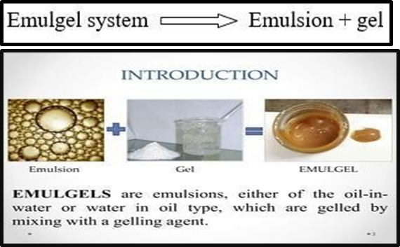An emulgel combines the properties of an emulsion and a gel. It includes a hydrophilic (water) phase and a hydrophobic (oil) phase stabilized by an emulsifier. It provides a smooth, non-greasy surface and promotes rapid absorption through the skin. Emulgels are ideal for topical drug delivery, offering controlled drug release, better spreadability, and patient compliance.[4].