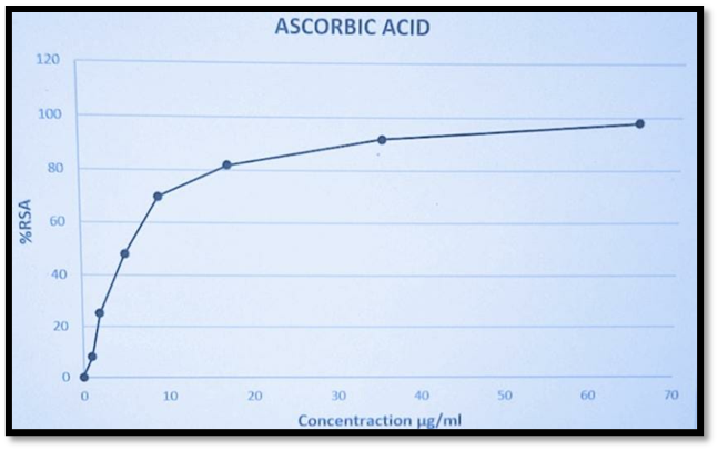 IC50 was calculated by plotting graph between concentration and %RSA.