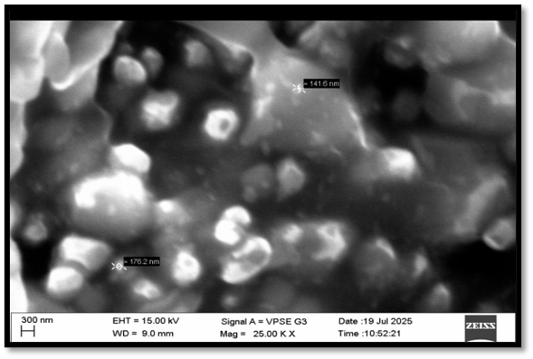 A drop of liposome (liquid form) was spread on conducting carbon tape which was already pasted on aluminum stub (base) of FESEM (TESCAN, Model: Mira3) chamber. The stub was kept in oven at 100ºC for 10 hours to ensure total moisture removal. The image was captured using electron detector which detects the secondary electron emitted from sample when high energy electron beam with high voltage (kV) strikes on sample surface.