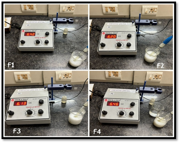The pH meter was calibrated using standard buffer solution. About 0.5 g of cream was weighed and dissolved in 50 ml of distilled water and its pH was measured using digital pH meter.