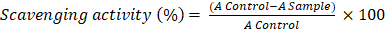 Scavenging activity %= (A Control-A Sample)A Control ×100