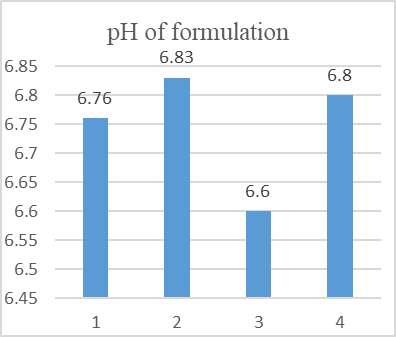Measurement of pH: 1 gm of gel should be taken and distributed in 10 ml of distilled water and keep it aside for 2 hours. The measurement of pH of formulation is carried out in 3 times and the average values are stated.
