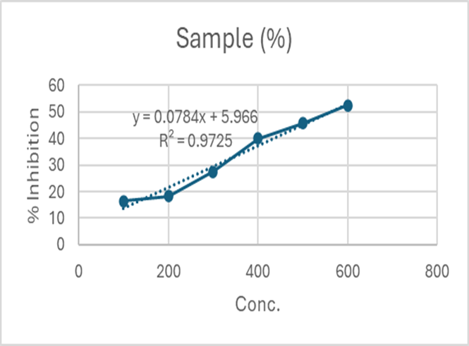 Figure 38. % inhibition vs. conc.of sample of Inhibition of Protein Denaturation