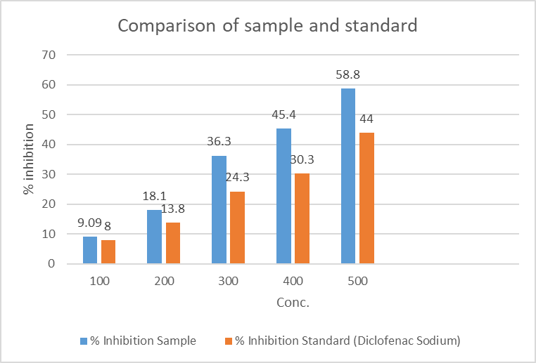 Table 13. Observation of Inhibition of Protein Denaturation Test Sample and Standard vs. Conc