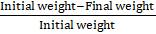 Percentage moisture loss = Initial weight-Final weight Initial weight