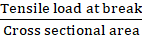 Tensile Strength = Tensile load at breakCross sectional area