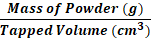 Tapped Density = Mass of Powder (g)Tapped Volume (cm3)