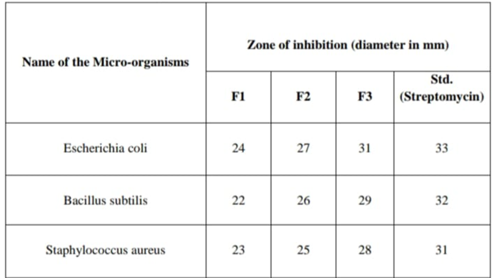 The antimicrobial efficacy was tested against Escherichia coli, Staphylococcus aureus, and Bacillus subtilis and Bacillus subtilis using the agar well diffusion method. Wells were bored in Muller Hinton agar plates, and 100 µL of the sanitizer was added. Streptomycin was used as a reference standard. Plates were incubated at 37°C for 24 hours, and zones of inhibition were measured to evaluate efficacy.