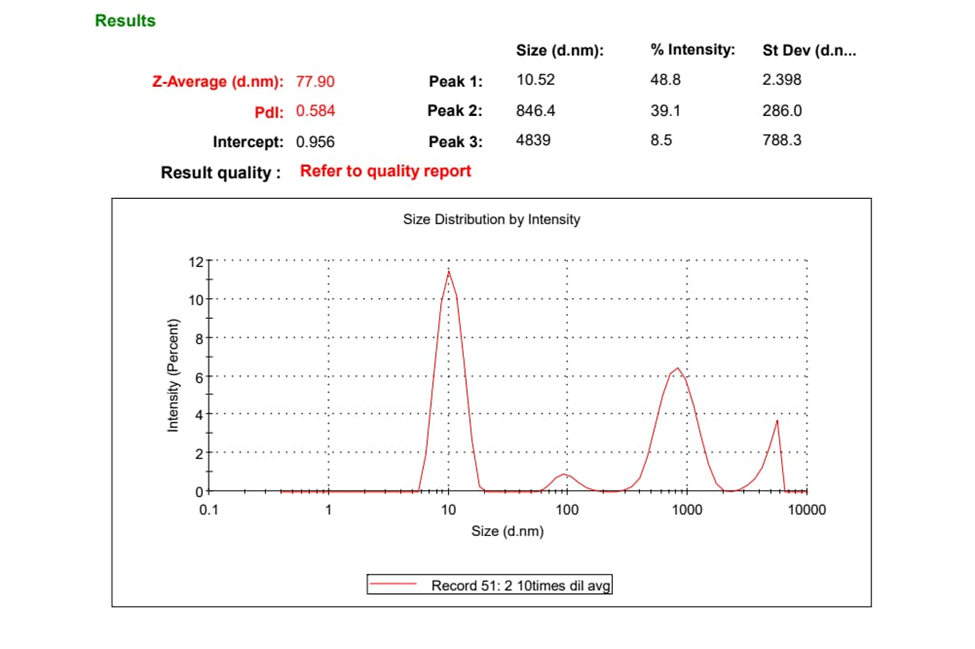 High Drug Entrapment: The formulation exhibited a drug entrapment efficiency of 89.23%, ensuring a substantial amount of Fluvoxamine was effectively enclosed within the nanoemulsions, which is vital for enhancing therapeutic effectiveness Controlled Release Mechanism: In vitro drug release studies revealed that the F7 formulation provided almost complete drug release, with a dual release mechanism involving both diffusion and erosion processes, aligning with the Korsmeyer-Peppas model. This mechanism is beneficial for maintaining therapeutic medication levels over time.
