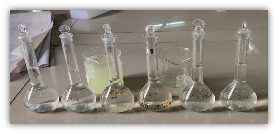 Beakers (100, 250, 500, 1000 ml), Volumetric flask (10, 100 ml), Measuring cylinder (10, 50 ml), Glass rod, Spatula, Conical flask (100, 500 ml), Funnel, Round bottom flask (500 ml), Pipette, Test tube etc.