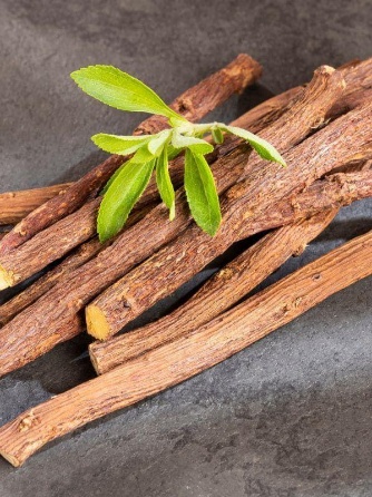 Licorice (Synonyms: Glycyrrhiza glabra L), a medicinal plant belonging to the Fabaceae family, has been extensively used in traditional medicine for its therapeutic properties, including wound healing, analgesic effects, relief from cough, and treatment of gastritis. The plant is rich in bioactive constituents such as flavonoids, sterols, gums, starches, and essential oils, which contribute to its pharmacological effects.(20) One of the key active compounds, glycyrrhizin, exhibits a mineralocorticoid-like action by inhibiting the enzyme 11β-hydroxysteroid dehydrogenase type 2, which plays a role in steroid metabolism and hormonal regulation. In experimental studies, licorice root extract demonstrated promising effects in managing metabolic and endocrine disturbances associated with Polycystic Ovary Syndrome (PCOS). In a study involving 50 Sprague-Dawley rats with PCOS, administration of licorice extract alleviated adverse effects related to insulin resistance and hyperglycemia, indicating its potential to mitigate metabolic dysfunctions linked to the disorder. The results suggest that licorice may help in regulating hormonal imbalance, improving insulin sensitivity, and reducing oxidative stress, which are key factors in PCOS pathophysiology. Therefore, licorice offers a natural, safe, and effective adjunct therapy for managing PCOS and associated metabolic complications.(21)