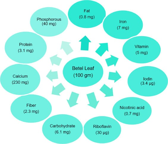 1. Active Compounds: Betel leaves contain beneficial bioactive compounds such as polyphenols, flavonoids, and alkaloids (like arecoline). However, some of these compounds may pose risks at high doses. [38]