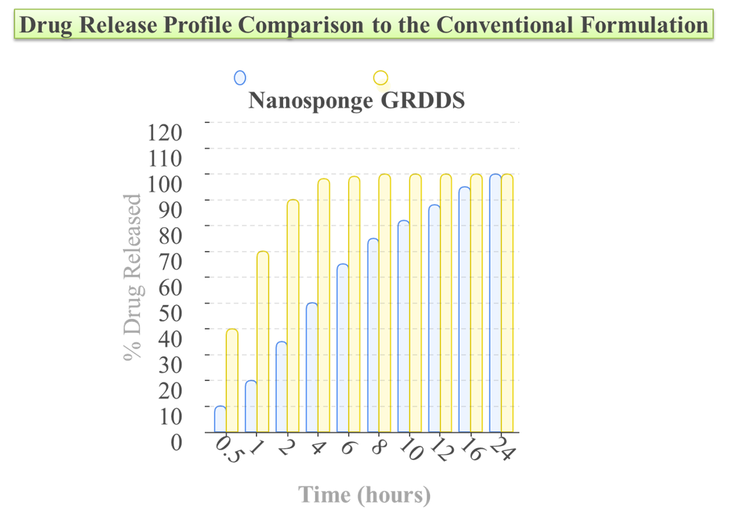 Indeed, the integration of nanosponges with established GRDDS platforms could represent a synergistic approach, leveraging the benefits of prolonged gastric retention with the enhanced drug encapsulation and controlled release characteristics of nanosponges [20]. This synergistic approach facilitates advanced pharmacokinetic profiles, leading to more consistent therapeutic drug levels and improved patient outcomes, particularly for drugs requiring site-specific absorption or extended gastric residence [38]. This allows for a reduction in dosing frequency and an improvement in therapeutic efficacy by ensuring that optimal drug concentrations are maintained over extended periods, thereby enhancing patient compliance [50].