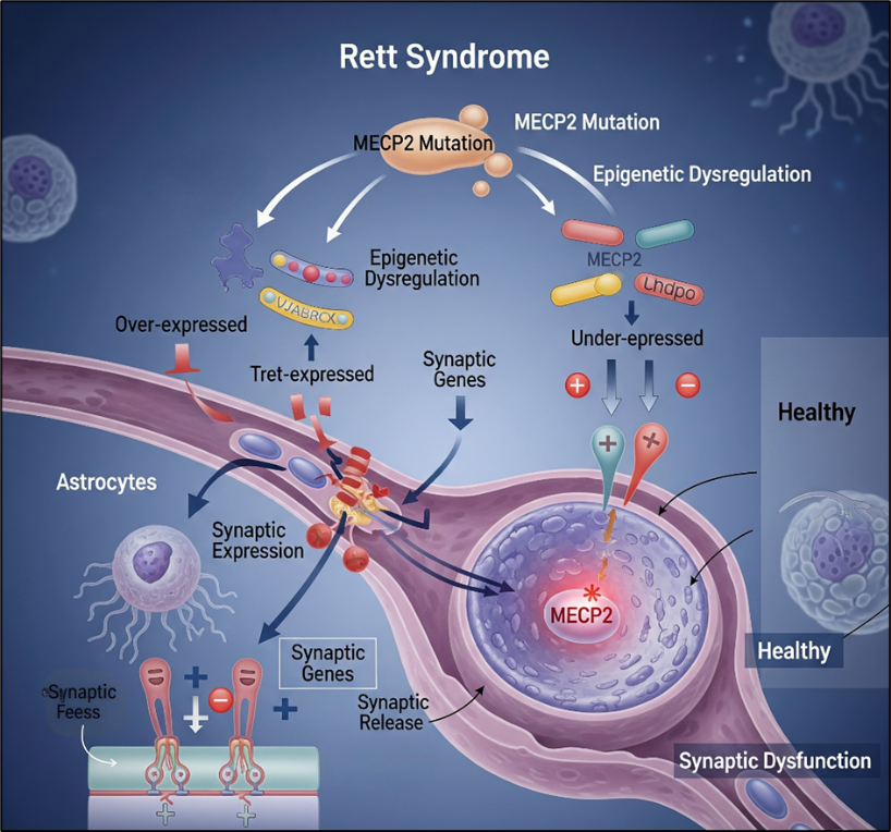 Rett syndrome is an X-linked neurodevelopmental disorder caused primarily by mutations in MECP2, leading to impaired synaptic function, intellectual disability, and autistic features [62].