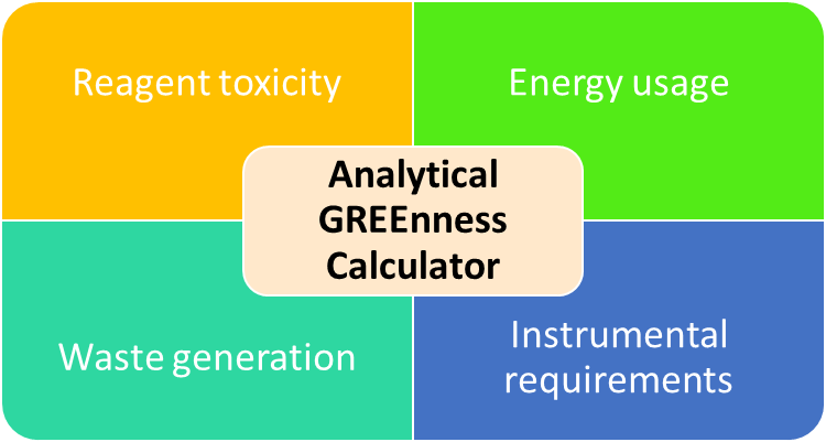 The Analytical GREEnness Calculator is a digital tool based on the 12 principles of Green Analytical Chemistry. It quantitatively assesses analytical methods by scoring them from 0 to 1 in categories like: