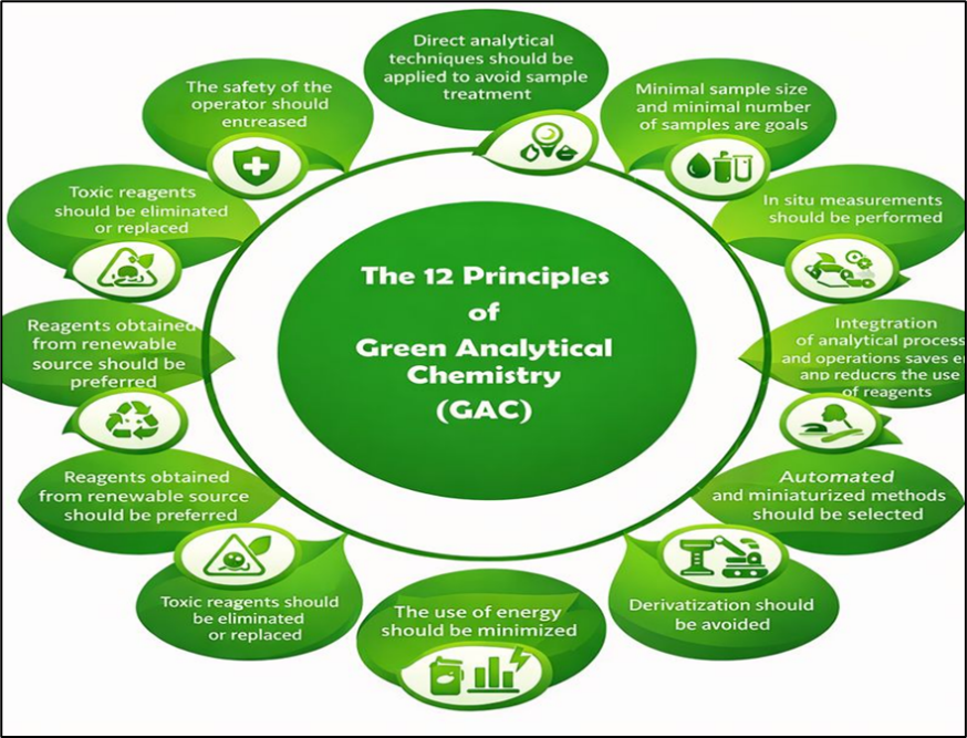 Growing environmental awareness has significantly reshaped scientific research, with analytical chemistry facing increasing scrutiny due to its reliance on toxic chemicals, high solvent consumption, and substantial waste generation. Conventional analytical procedures, while effective, often pose risks to human health and the environment. In response to these challenges, Green Analytical Chemistry (GAC) has emerged as an essential discipline aimed at integrating sustainability into analytical method development without compromising analytical quality.