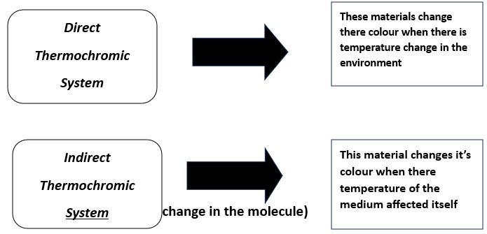The Thermochromic system is either direct Thermochromism or indirect Thermochromism based system: