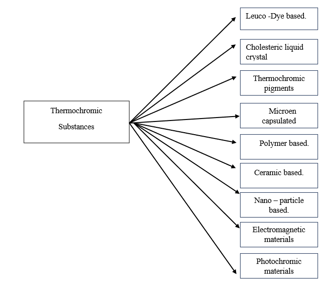 Leucodyed based Thermochromic materials:- This materials use the leuco dyes they respond to temperature shift and change there colour examples can be , ex. Leucodyed based , thermochromic ink3