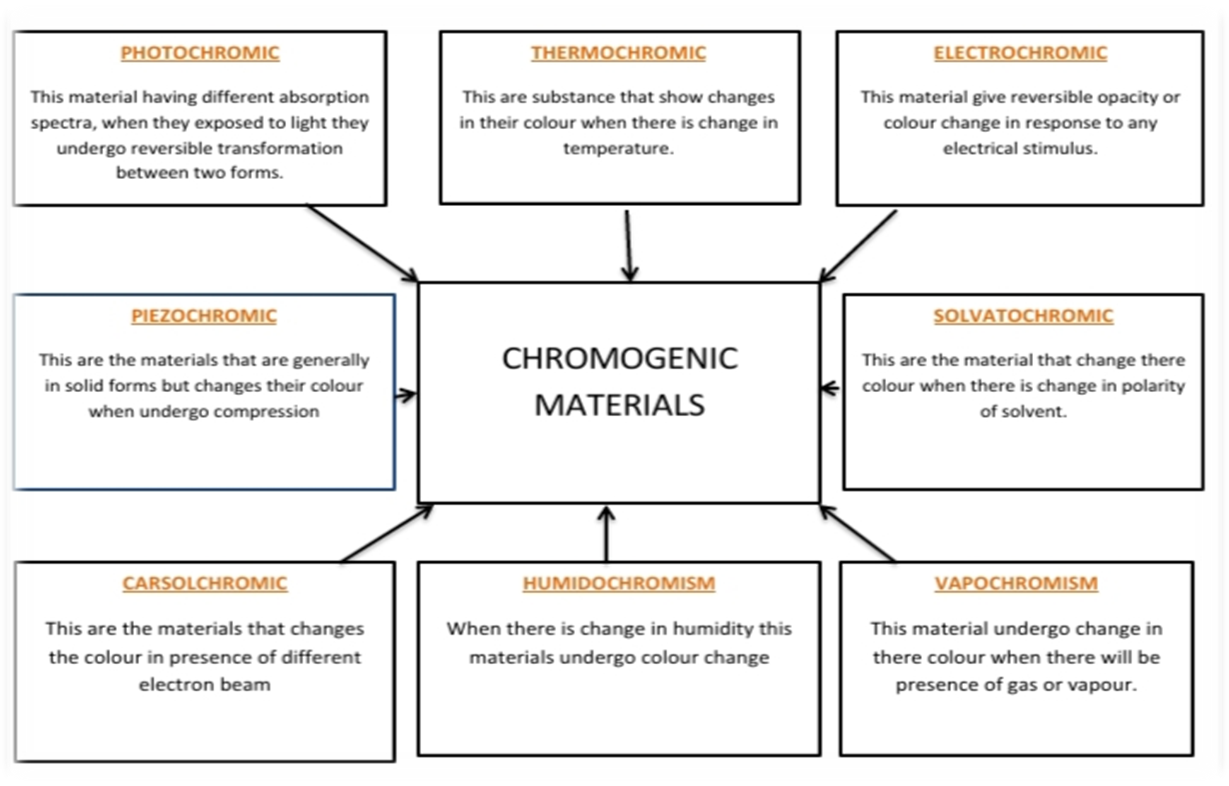 Carsolchromic materials: This materials changes its colour in presence of electrical beam light and shift to different colours 2