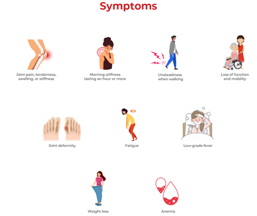 SYMPTOMS OF RHEUMATOID ARTHRITIS:-