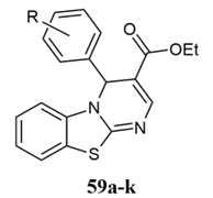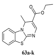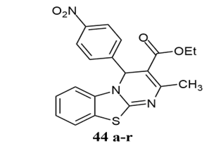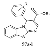 Nagarapu et al. reported the synthesis of novel benzo[4,5]thiazolo[1,2-a]pyrimidine-3-carboxylate 34a-j derivatives and their cytotoxicity effect against human breast adenocarcinoma MDA-MB-231 and MCF-7 tumour cell lines 29.