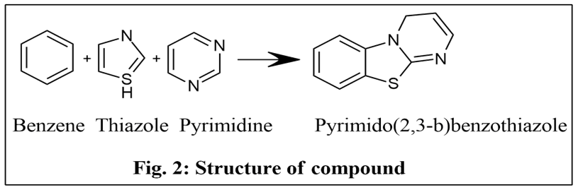 These two compounds (benzothiazole and pyrimidine), with beneficial biological activity, play a significant part in biological research due to their presence. The chemistry of fused heterocycles is known to fascinate the field of investigation in therapeutic chemistry. The ring is formed by the fusion of benzothiazole and pyrimidine is known as pyrimido [2, 3-b]benzothiazole. (Fig.2).