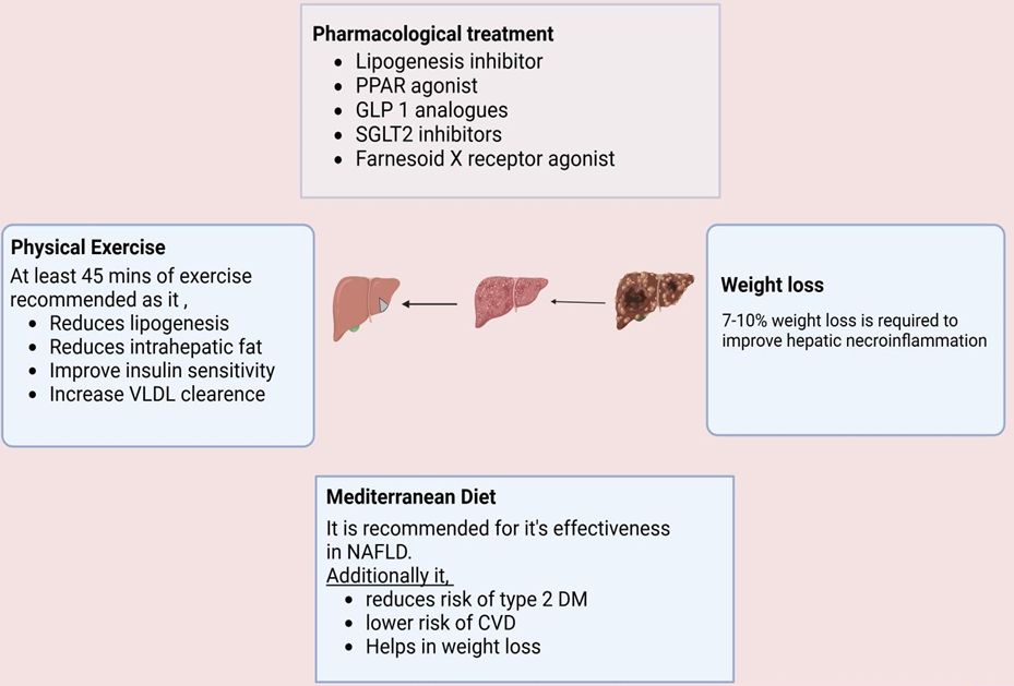 Non-alcoholic fatty liver disease (NAFLD) is a leading cause of chronic liver disease worldwide, affecting a significant proportion of the population due to the rising prevalence of obesity and metabolic syndrome. NAFLD encompasses a spectrum of conditions, ranging from simple hepatic steatosis to non-alcoholic steatohepatitis (NASH), which can lead to fibrosis, cirrhosis, and hepatocellular carcinoma. The disease is closely linked to insulin resistance, dyslipidemia, and type 2 diabetes, making it a critical component of metabolic dysfunction. The pathogenesis of NAFLD involves complex interactions between genetic predisposition, dietary habits, lipid metabolism abnormalities, oxidative stress, and gut microbiota dysbiosis. While non-invasive diagnostic tools such as imaging modalities and serum biomarkers have improved early detection, challenges remain in accurately assessing disease severity and progression. Currently, lifestyle modifications, including weight loss, exercise, and dietary interventions, are the cornerstone of treatment. However, novel therapeutic targets focusing on metabolic regulation, inflammation control, and fibrosis inhibition are under investigation to provide effective pharmacological options. Given the significant impact of NAFLD on liver-related and cardiovascular morbidity, early detection and comprehensive management strategies are essential. Future research should prioritize personalized medicine approaches, improved biomarkers, and targeted therapies to prevent disease progression and reduce the global burden of NAFLD.