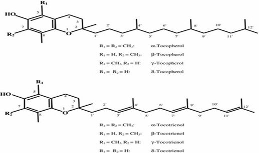An imbalance between the biological system's capacity for rapid detoxify reactive intermediates and the systemic manifestation of reactive oxygen species is reflected in oxidative stress. Vitamin E (Vit. E), also known as alpha tocopherol, is one of the essential vitamins and micronutrients. Hydroxyl group in the thetocochromanol ring that donates or releases the hydrogen ion to neutralise free radicals and reactive oxygen species is the main reason for the antioxidant property of Vit E. It fat-soluble vitamin and consists of four isoforms α-, β-, δ , and γ, which possess their unique properties. Cell proliferation, cellular signaling, and the modulation of inflammatory response genes are all impacted by these isoforms. 2 2 2 Through modifying the activity of several enzymes involved in signal transduction, including protein kinas (PKC), cyclooxygenase-2 (COX 2), 5 lipooxygenase, protein phosphate, monocyte chemoattractant protein-1, and various factors in the mitogen- activated protein (MAPK) signal transduction pathway, Vit. E acts both directly and indirectly.