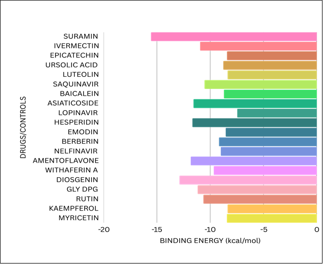 Among the compounds screened, Suramin exhibited the best binding affinity of -15.0 kcal/mol. This value indicates a strong interaction between Suramin and the HMPV fusion protein.