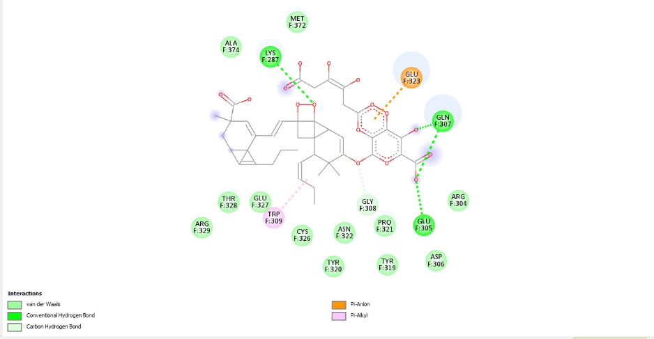 A total of 64 compounds were docked against the HMPV fusion protein, and from this extensive screening, 20 compounds were selected for detailed analysis based on their binding affinities and interaction profiles.