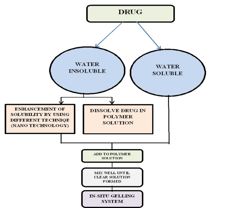 According to the current assessment, the "in situ gel" system has become one of the greatest innovative drug delivery methods, it facilitates the controlled and prolonged release of medications and enhances patient comfort and compliance. Oral, ophthalmic, transdermal, buccal, intraperitoneal, parenteral, injectable, rectal, and vaginal routes are among the possible uses for a variety of natural and synthetic polymers that go through in situ gel formation. Research on the in situ gel system has a lot of potential to produce cutting-edge methods for medication delivery. The use of water-soluble and biodegradable polymers in in situ gel formulations increases their acceptability and quality as a drug delivery strategy.
