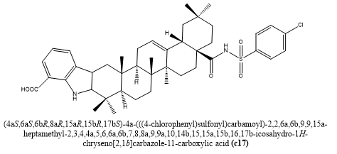 Jinxuan Li et, al., addressed the urgent need for new antibacterial medicines by developing and synthesizing a novel family of Methicillin-resistant Staphylococcus aureus strain 31 (also called MRSA and other multidrug-resistant microbes are targeted by indole-benzosulfonamide oily acid (OA) analogues 75. To increase antibacterial action, the pharmacophores benzosulfonamide and indole were semisynthetically incorporated into the Op structure in this study. When compared to the traditional antibiotic norfloxacin, metabolite c17 showed the strongest antibacterial activity in vitro against Staphylococcus strains, including MRSA, out of the 26 compounds that were synthesized. In a mouse skin model infected with MRSA, C17 demonstrated remarkable efficacy, significantly reducing the bacterial burden. According to mechanistic studies, c17 may prevent and stop the formation of biofilms while also jeopardizing the functionality of the membranes of bacteria, two crucial strategies for getting past resistance. Additionally, c17 showed a good safety profile by exhibiting little blood coagulation and negligible damage to animal lines of cells (NIH 3T3 and HEK 293T). Given these promising results, indole-benzosulfonamide OA derivatives—in particular, c17—are prime candidates for further study as anti-MRSA therapeutic agents (30).
