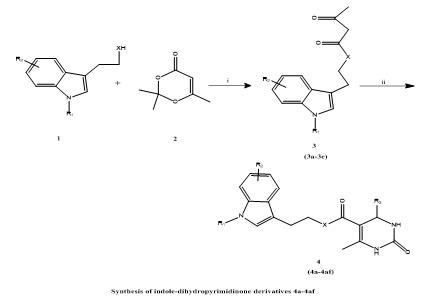 Garvita Mishra et, al., in response to the urgent demand for new therapeutic agents to treat leishmaniasis, researchers developed and synthesized a collection of thirty-four indole–dihydropyrimidinone hybrid molecules using the Biginelli multicomponent reaction—a well-known, efficient synthetic approach. These compounds were evaluated for their anti-leishmanial activity through both in vitro and in vivo models. In vitro assessments were performed against intracellular amastigote forms of Leishmania donovani, while in vivo efficacy was determined using a golden hamster model representative of visceral leishmaniasis (VL). Among the synthesized compounds, derivatives 4f and 4m demonstrated notable inhibitory effects on the parasite, exhibiting IC?? values of 4.54 μM and 5.05 μM, respectively. Importantly, both compounds displayed minimal cytotoxicity toward the J774.1 murine macrophage cell line, indicating a favorable therapeutic index. These findings suggest that the indole–dihydropyrimidinone scaffold holds promise as a basis for developing effective and safe anti-leishmanial drug candidates. Notably, compound 4f demonstrated >65% parasite removal in vivo, greatly outperforming 4m. Mechanistic studies revealed that 4f acts by inducing oxidative stress, which causes mitochondrial dysfunction, ATP depletion, and, ultimately, apoptosis in the parasite. Additionally, SAR (structure-activity relationship) and pharmacokinetic (PK) investigations confirmed 4f's promise as a lead molecule for future anti-leishmanial medication development. In conclusion, compound 4f is a promising candidate for continued development as a chemotherapeutic agent for visceral leishmaniasis, addressing the crucial dilemma of drug resistance and limited treatment alternatives (25).