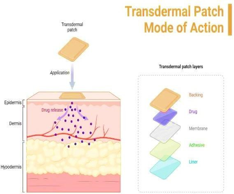 The goal of the transdermal drug delivery system (TDDS), which falls under the category of controlled drug delivery, is to administer the medication via the skin at a predefined and regulated rate[11].Transdermal drug delivery systems (TDDS), also known as “patches,” are dosage forms designed to deliver a therapeutically effective amount of drug across a patient’s skin. In order to deliver therapeutic agents through the human skin for systemic effects, the comprehensive morphological, biophysical and physicochemical properties of the skin are to be considered[12]. Transdermal delivery provides a leading edge over injectables and oral routes by increasing patient compliance and avoiding first pass metabolism respectively[13].