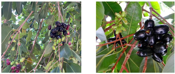 Jamun is a tree that grows in warm places. It is part of the Myrtaceae family. Both the tree and its fruit are easy to tell apart because they look very different from each other: