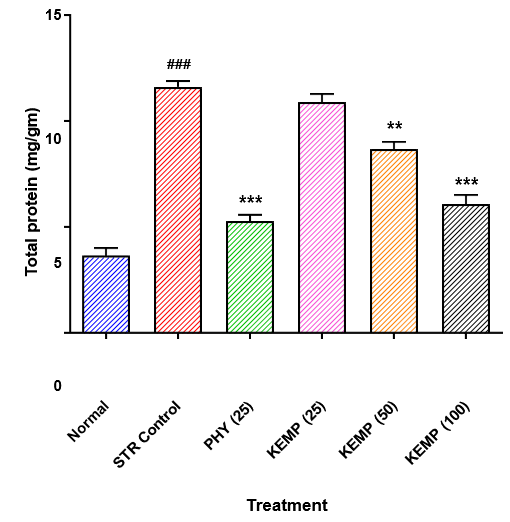 Effect of kaempferol on STR-induced alteration in brain total protein level: