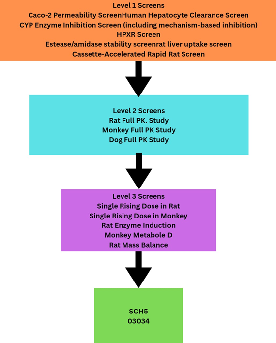 FIGURE 1. Application of the DMPK screening paradigm to the selection of HCV compounds as a component of the lead optimization and candidate selection process.