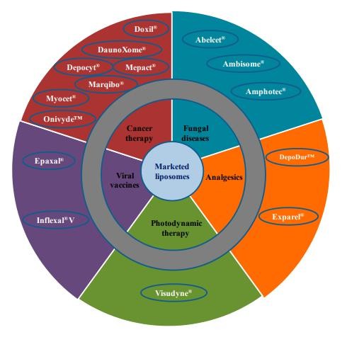 Figure 3. Therapeutic domains where liposome-based medicines are used