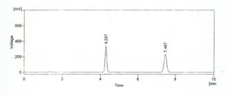 Wavelength: 260nm Flow rate: 1ml/min Injection volume: 20μl Run time: 10