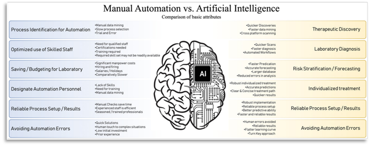Figure 7. Guide Artificial Intelligence (AI) against Automation: Although automation increases productivity, it necessitates modifications to the laboratory's infrastructure and a change in the requirements for employee training.
