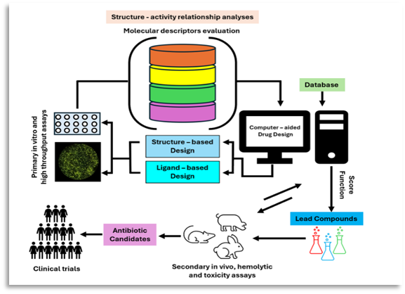 Regardless of the methods utilized, the collected data constitute the cornerstone for designing a suite of new chemicals. These new substances are put through a thorough testing process, and the findings give new information about their pharmacological characteristics. The compounds are refined through a series of steps in this recurrent cycle until a reliable scoring system produces potential antibiotic medicines. Following optimization, these candidates are critically assessed to look at their safety and effectiveness characteristics in vivo. then put through a rigorous assessment that looks at their safety and effectiveness characteristics in vivo.