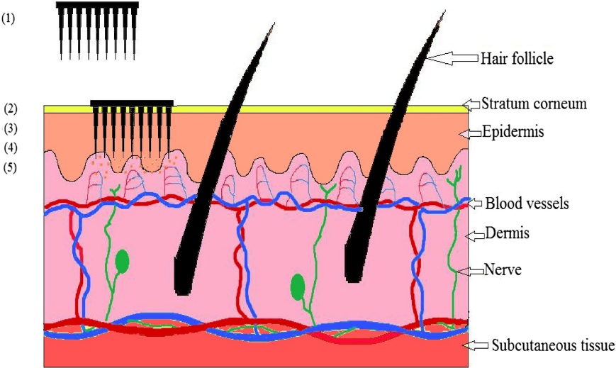 The skin acts as a highly efficient protective barrier against environmental insults and chemical exposure. While this function is physiologically essential, it limits the transdermal absorption of most drug molecules. Conventional hypodermic injections provide effective systemic delivery but are associated with discomfort, needle anxiety, and reduced long-term adherence. Conversely, topical formulations often fail to achieve therapeutic drug concentrations due to limited permeability across the stratum corneum.