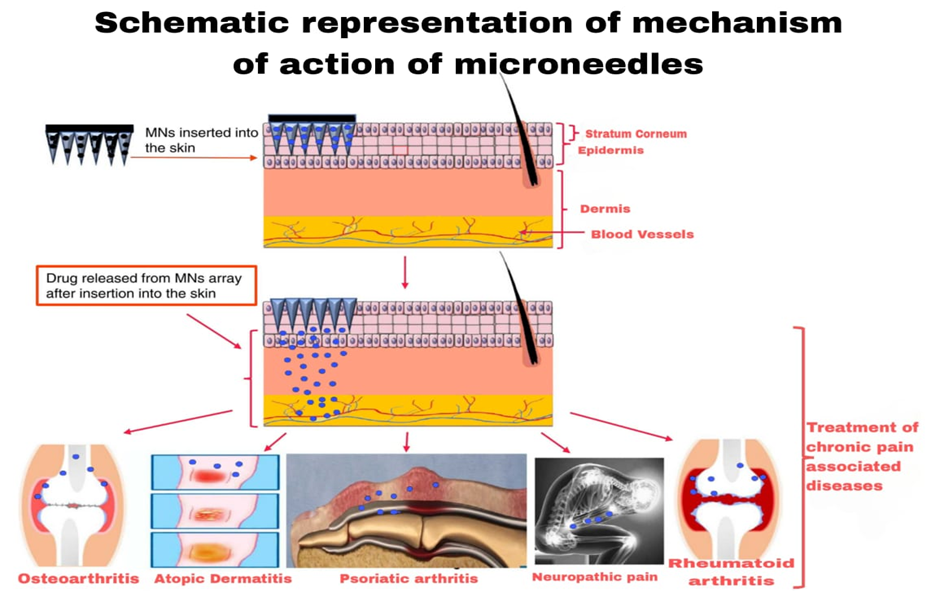 Microneedle systems have demonstrated potential in osteoarthritis, rheumatoid arthritis, neuropathic pain, atopic dermatitis, and psoriatic arthritis. Localized dermal delivery reduces systemic exposure and enhances therapeutic precision. Sustained-release designs further improve long-term symptom control.