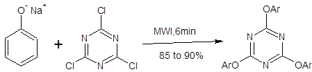 Substituted Triazines' Formation Under microwave irradiation (6 min), sodium phenoxide and 1,3,5-trichlorotriazine are used to perform aromatic nucleophilic replacements. The yields of 1,3,5-triarlyoxytriazines, the products, range from 85 to 90%.