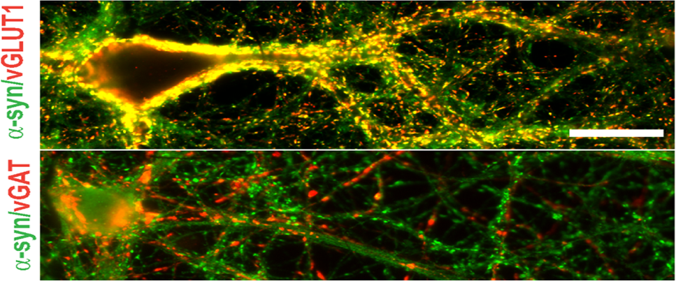 Figure 2: Colocalization of α-Synuclein with Excitatory and Inhibitory Synaptic Markers in Neuronal Cultures