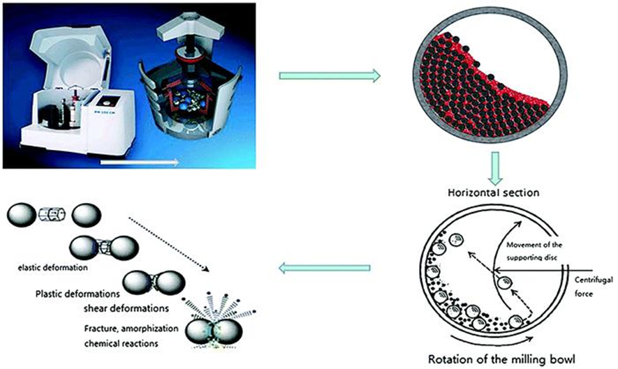The principle of the ball milling method. Reprinted with permission from. Copyright: ©2016, John Wiley & Sons, Ltd.