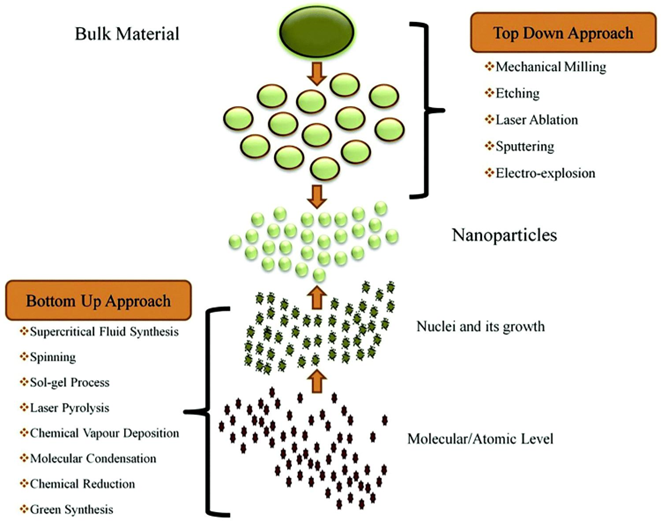 Two main approaches are used for the synthesis of nanomaterials: top-down approaches and bottom-up approaches