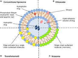 It is the ultra-development of Liposomes with added edge activators like Tween 80. It can push itself through narrow channels of the skin, making it excellent for transdermal drug delivery. It is used in the delivery of peptides, anti-inflammatory agents and hormone delivery via dermis.12