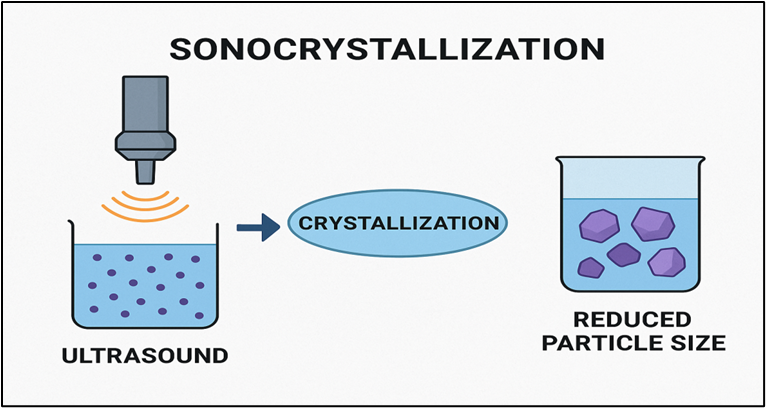 Sonocrystallization is a new technique where ultrasound is used to reduce particle size.